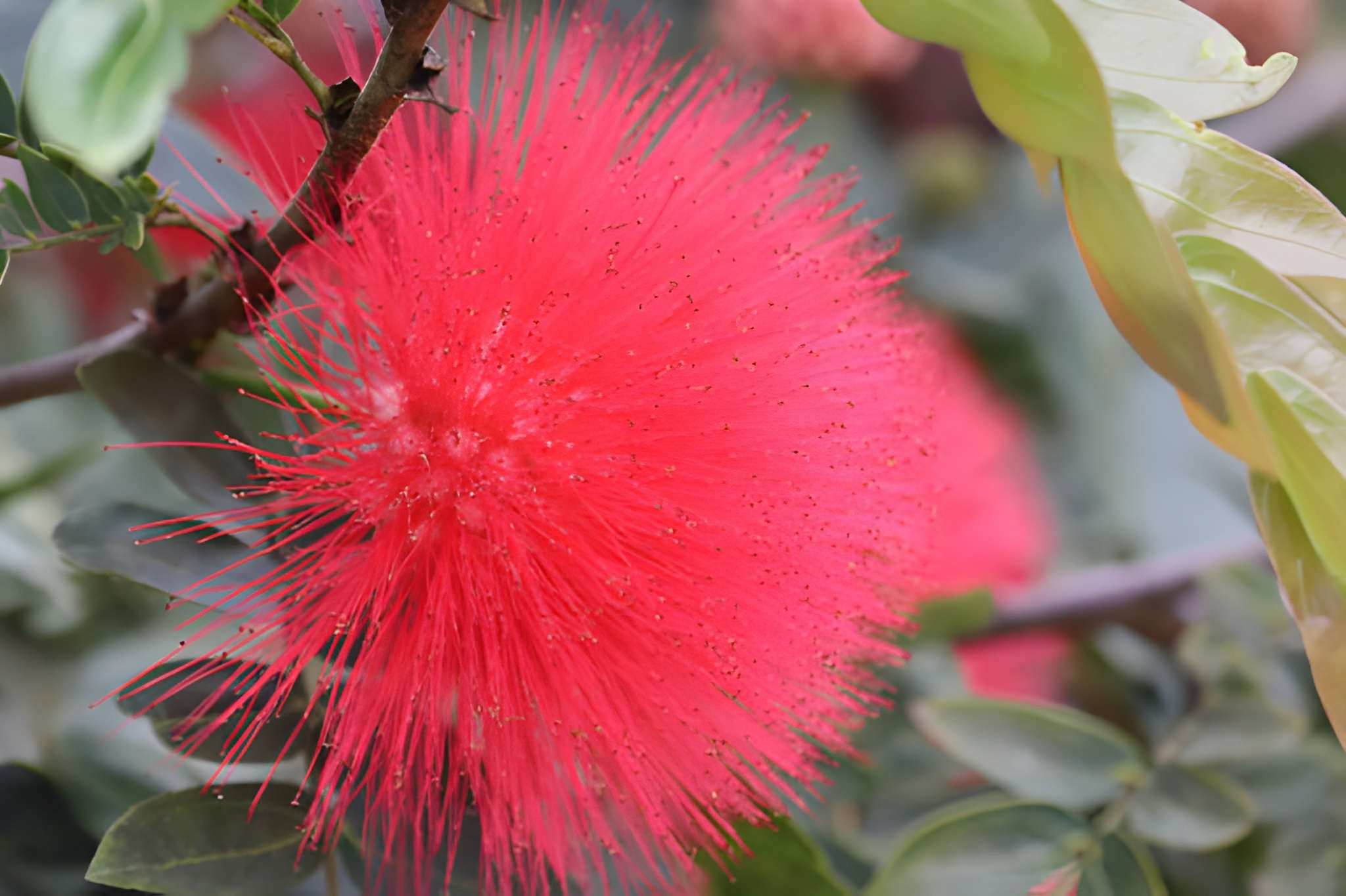 3. گل : گلهای این درخت به صورت توده ای که پرچمهای صورتی و پرز دار دارند به صورت یک توپ روی درخت نمایان میشوند.