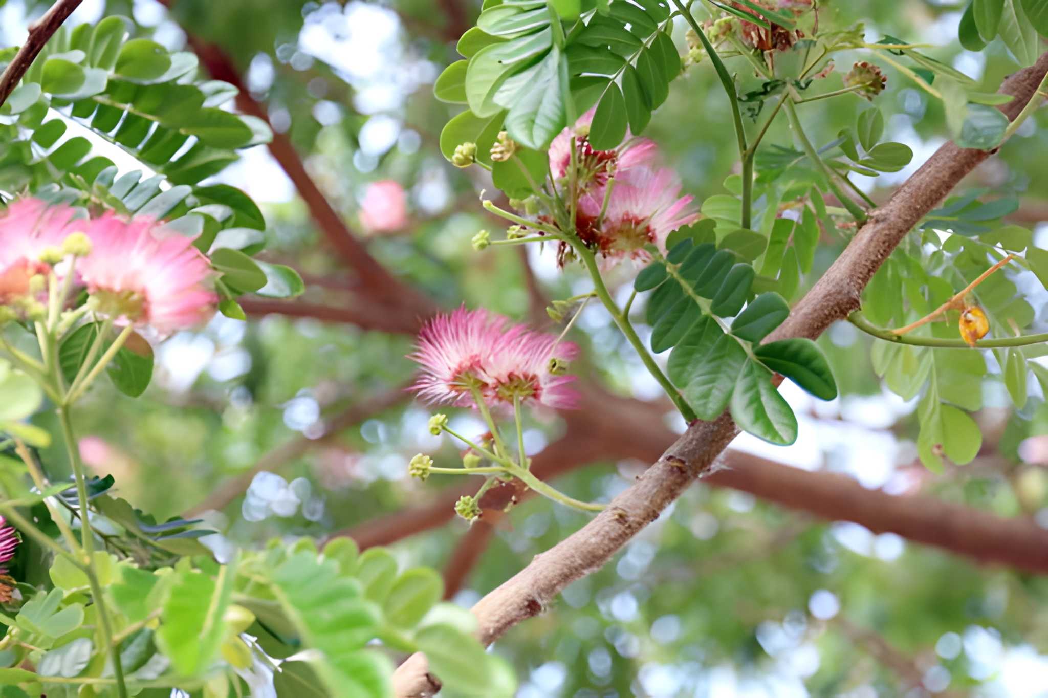 گلهای این درخت شبیه به پرچمهای ابریشمی ظریف هستند که در خوشههای متراکم کنار هم قرار گرفتهاند. جالب است بدانید برگهای گل ابریشم رفتار خاصی دارند؛ شبها یا وقتی لمسشان میکنید، جمع میشوند. این ویژگی که به آن «حرکت خواب» میگویند، به گیاه ظاهری زنده و پویا میدهد. زنبورها و پروانهها عاشق این گلها هستند و اگر دنبال جذب گردهافشانها به باغچهتان هستید، گل ابریشم انتخاب فوقالعادهای است.