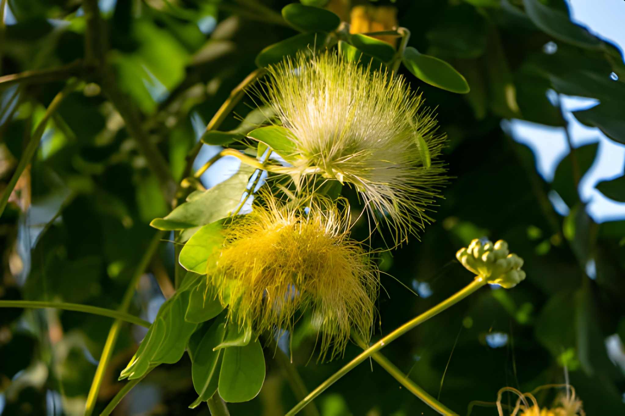 گلهای این درخت شبیه به پرچمهای ابریشمی ظریف هستند که در خوشههای متراکم کنار هم قرار گرفتهاند. جالب است بدانید برگهای گل ابریشم رفتار خاصی دارند؛ شبها یا وقتی لمسشان میکنید، جمع میشوند. این ویژگی که به آن «حرکت خواب» میگویند، به گیاه ظاهری زنده و پویا میدهد. زنبورها و پروانهها عاشق این گلها هستند و اگر دنبال جذب گردهافشانها به باغچهتان هستید، گل ابریشم انتخاب فوقالعادهای است.